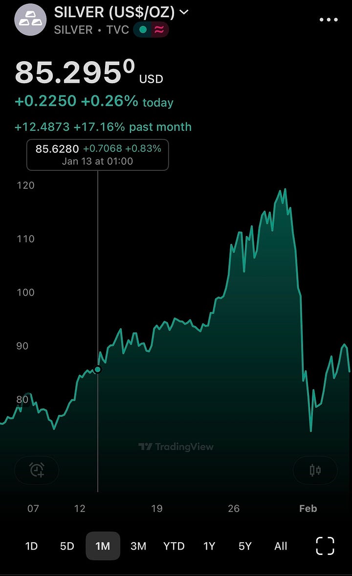 If precious metals were truly the new meme stocks, driven primarily by retail investors and leverage, then the SP500 and the Nasdaq composite, which are bundled in menagerie of ETFs, and tokenized on every shitcoin exchange you could imagine, would also be experiencing 5% daily price swings. They don’t.